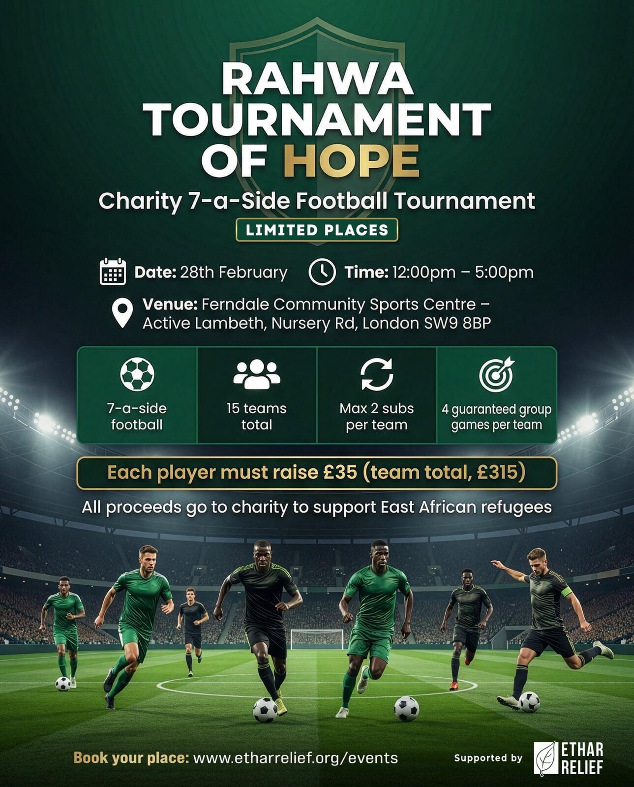 Join us on 28th February for a high-energy 7-a-side charity football tournament supporting East African refugees.